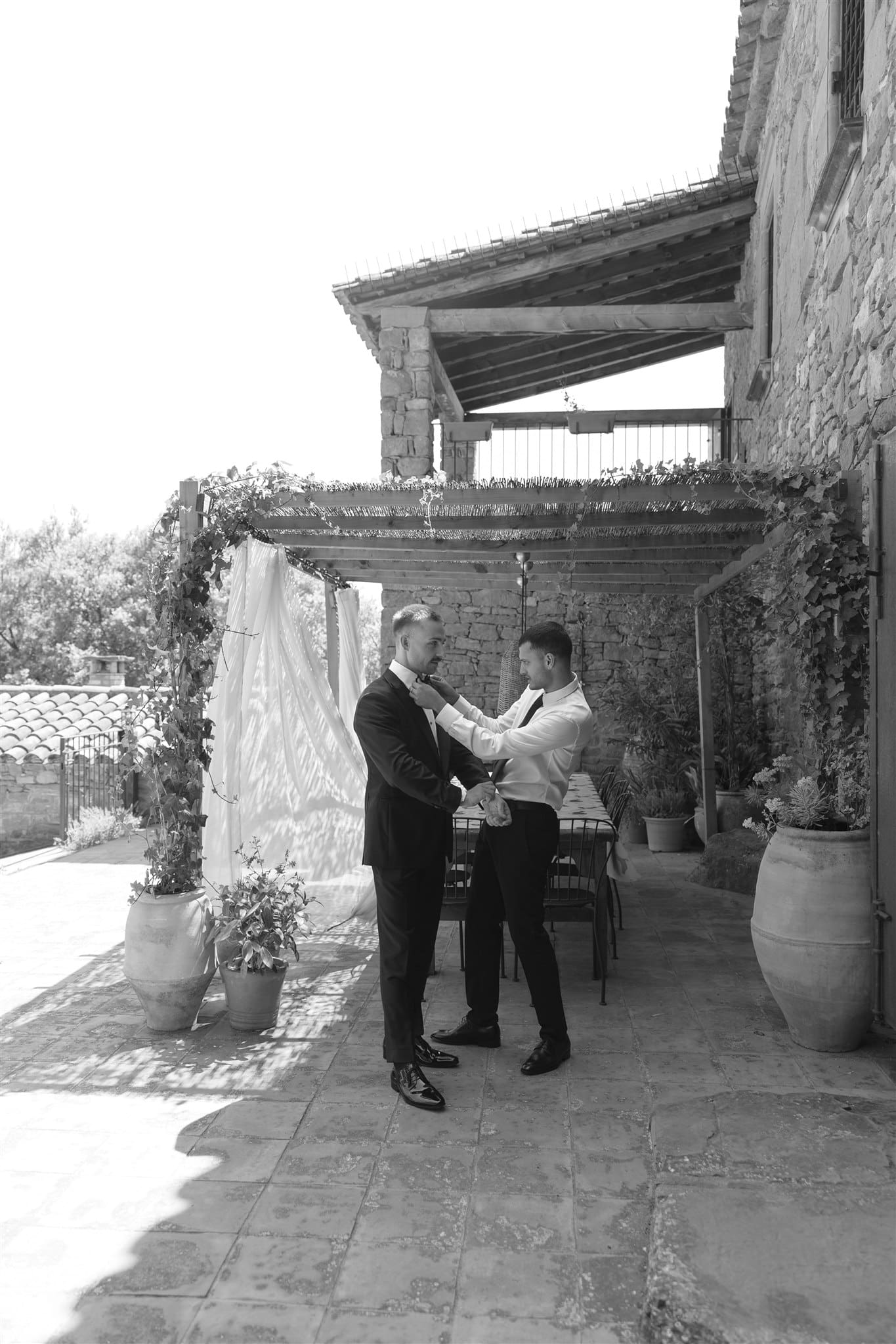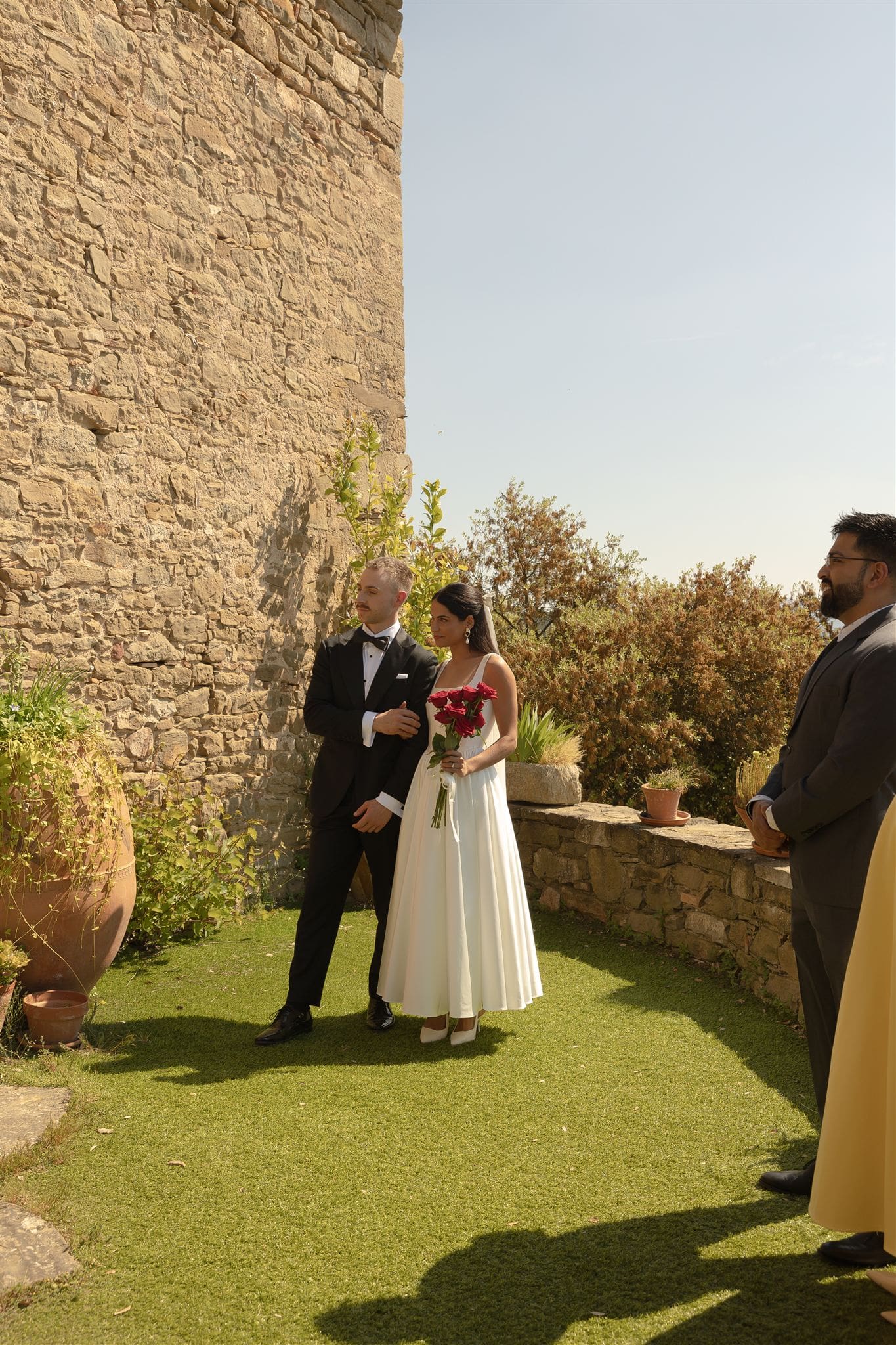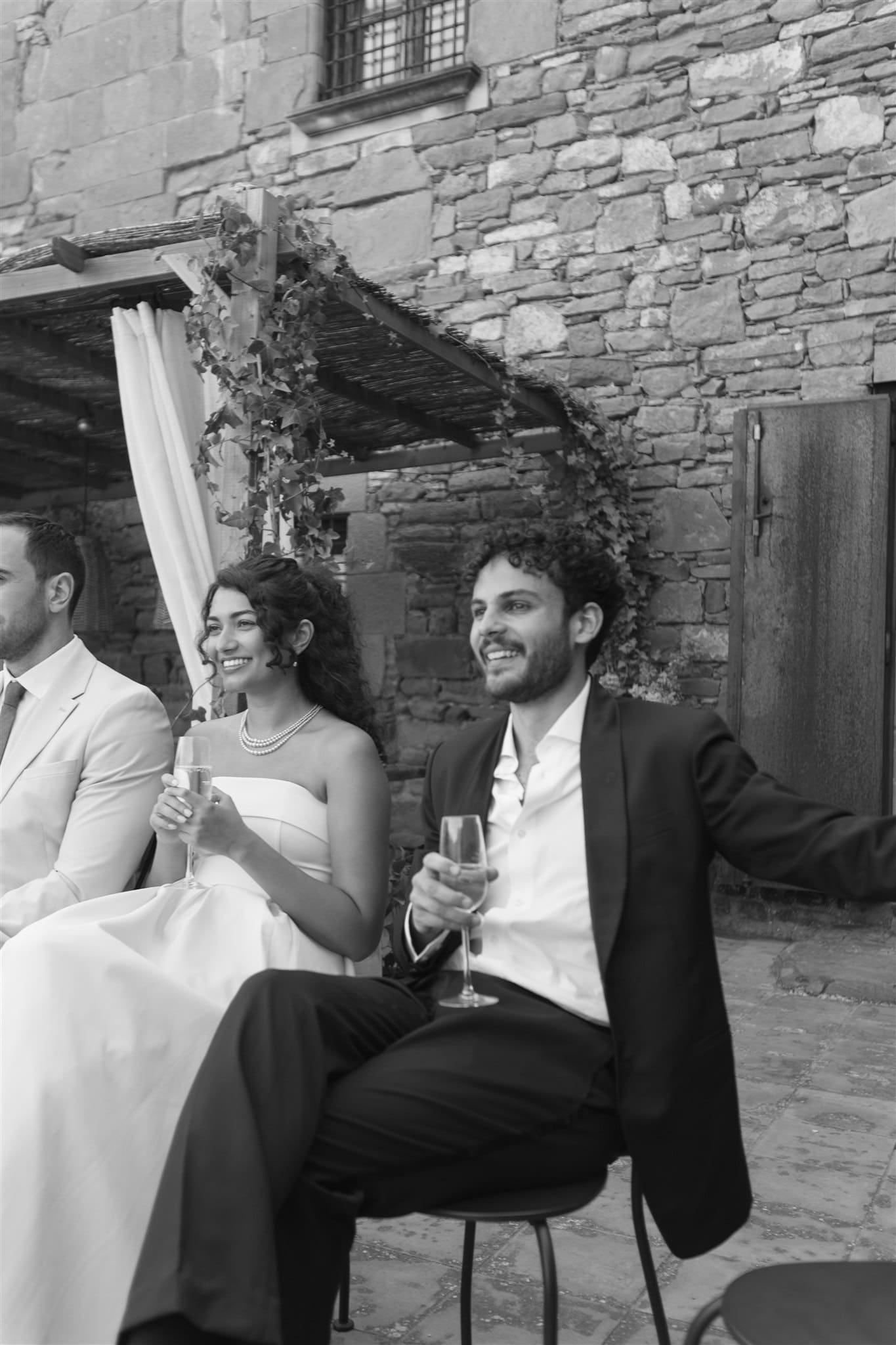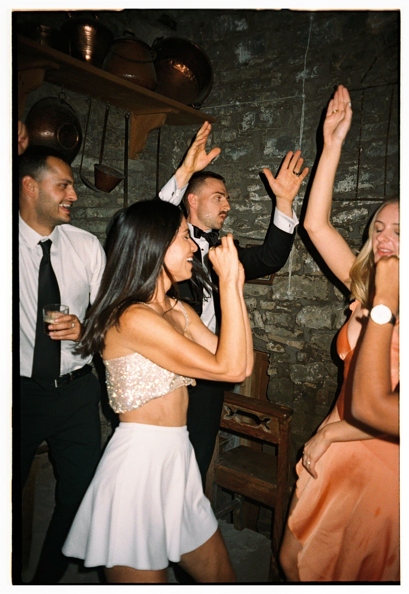 They shared their vows, surrounded by 12 of their closest people, as warm light poured across the courtyard. It was intimate, emotional, full of tears and laughter in equal measure. Later that night, they turned the villa’s basement into a makeshift dance floor — affectionately named “the rave cave” or “boiler room” — where the music and joy continued.